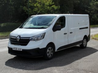 Introducing the 2022 Renault Trafic 2.0 dCi Blue LL30 Business Panel Van. This reliable diesel vehicle has only 26820 miles on the clock and comes with a valid MOT until 06/05/2026. With a gross weight of 3070kg, this ULEZ compliant panel van is perfect for transporting goods with ease. The interior includes 3 spacious seats and 3 doors for convenient access. Its Euro 6 engine delivers 150 ps of power and is designed to be fuel efficient. The sleek Glacier White exterior is complemented by rear parking sensors, a 4.2in TFT colour driver information display, and 12V power sockets in both the front and load area. Don't miss out on this opportunity to own a versatile commercial vehicle that is both practical and stylish.